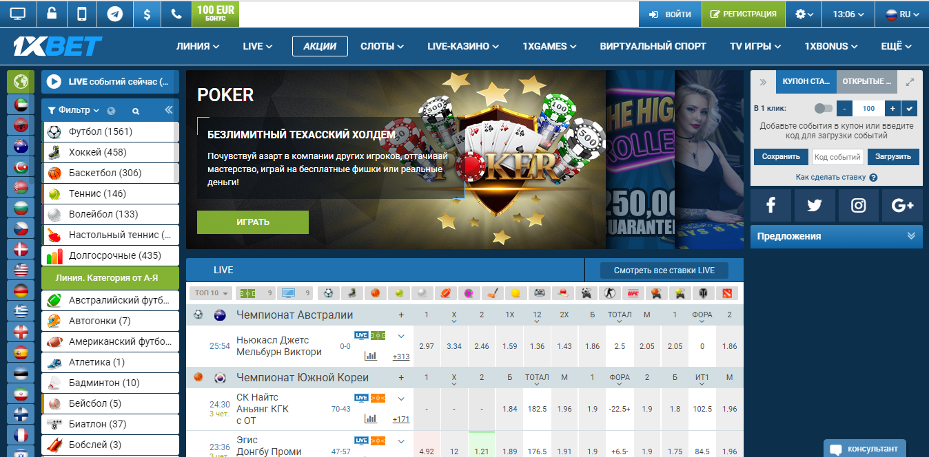 Использование 1xBet зеркала позволяет пользователям обойти блокировки, обеспечивая стабильный доступ к официальному сайту 1xBet. Это альтернативный адрес, который полностью повторяет функционал основного ресурса, включая ставки на спорт, казино и другие развлечения. Если у вас уже есть аккаунт в личном кабинете 1хБет, вы можете войти через 1хБет зеркало рабочее на сегодня прямо сейчас, используя свои данные. Для новичков мы подготовили подробное руководство, как зарегистрироваться и начать игру на платформе сайта 1xBet.